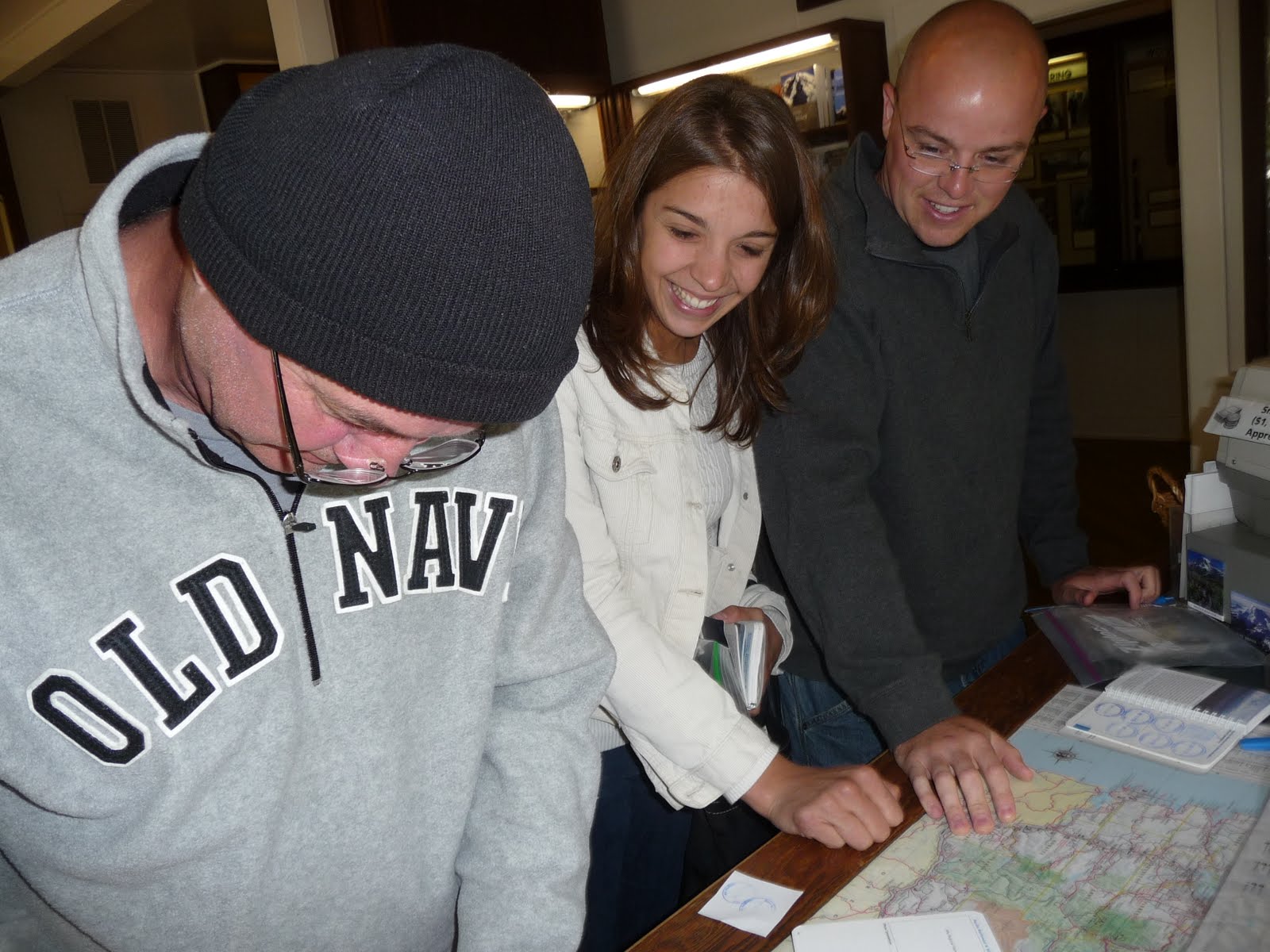 It was a rainy misty day, low gray clouds but we made the pretty drive up to the first visitors station of the park and the "first stamp" of the trip.